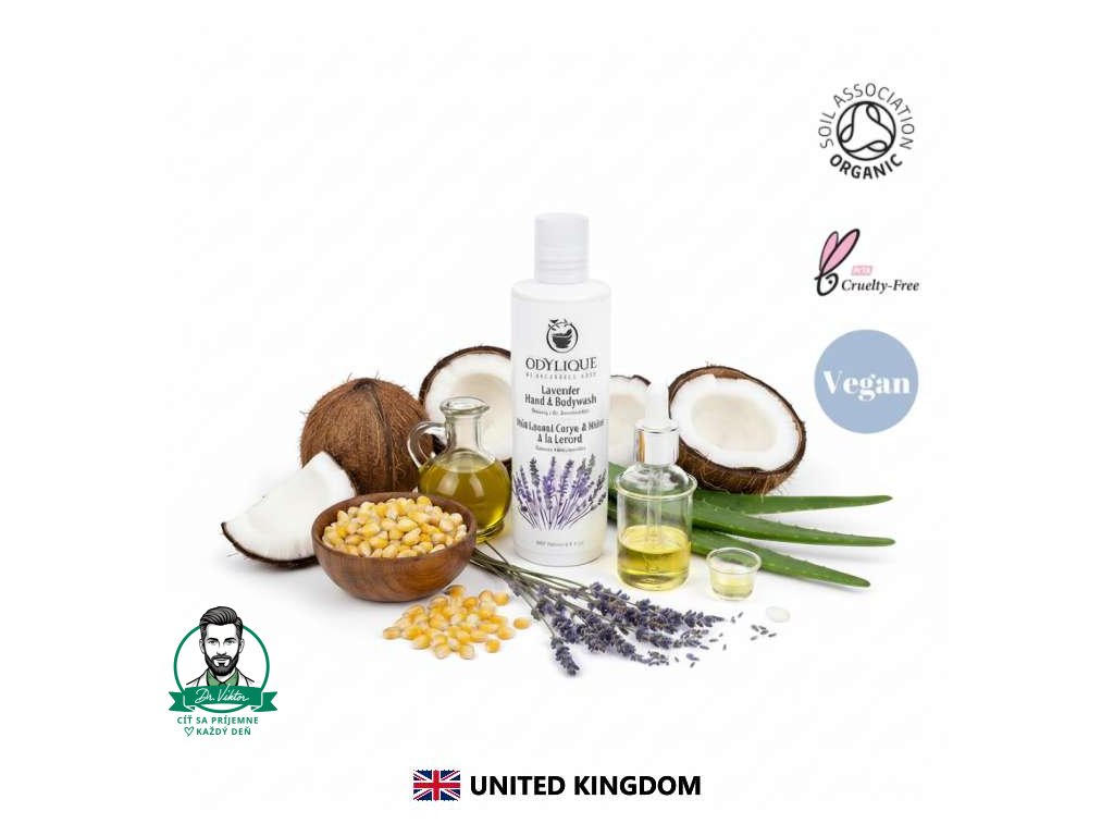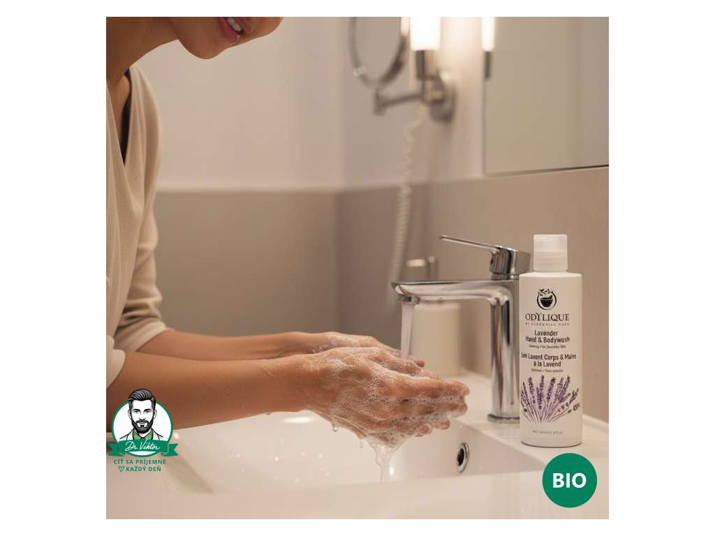 Extra panenský olivový olej zjemňuje a regeneruje, aloe vera prináša úľavu a hydratáciu, zatiaľ čo esenciálne oleje z levandule a lavandínu pôsobia relaxačne na telo i myseľ. Je ideálny aj ako prírodné tekuté mydlo na ruky – zvlášť pre citlivú alebo suchú pokožku.